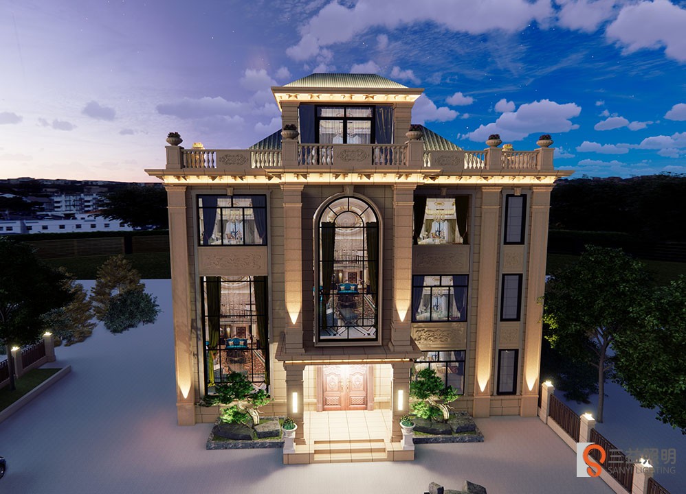 別墅燈光采用3D漫游設(shè)計(jì),燈具采用專(zhuān)業(yè)工程款瓦楞燈、洗墻燈、LED投光燈、高檔柱頭燈、壁燈、草坪燈等,整體燈光營(yíng)造浪漫、溫馨的環(huán)境。