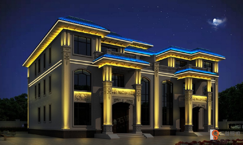 益陽(yáng)市資陽(yáng)區(qū)新橋河鎮(zhèn)田總別墅燈光設(shè)計(jì)項(xiàng)目別墅外墻燈光設(shè)計(jì),別墅 燈光亮化設(shè)計(jì),農(nóng)村自建房燈光工程,跟據(jù)墻體外觀(guān)特色,使用燈光勾勒出別墅造型,使鄉(xiāng)村別墅在夜間也能綻···